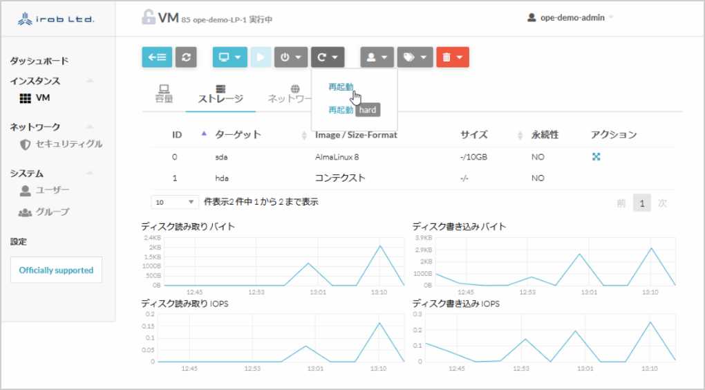 直感的でわかりやすいコントロールパネルにより、お客様自身により直接仮想マシンの状態確認や再起動などの操作をリアルタイムに行えます。
