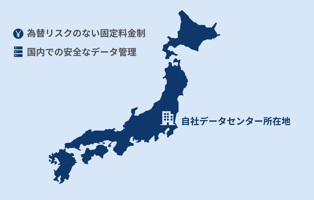 外資系クラウドは為替の影響を受けるため、予想以上に高額な請求がされる場合がある一方、当社クラウドであれば一定の利用料で管理ができます。日本国内の法律が適用されている国産クラウドを選ぶとセキュリティ面で尚安全です。