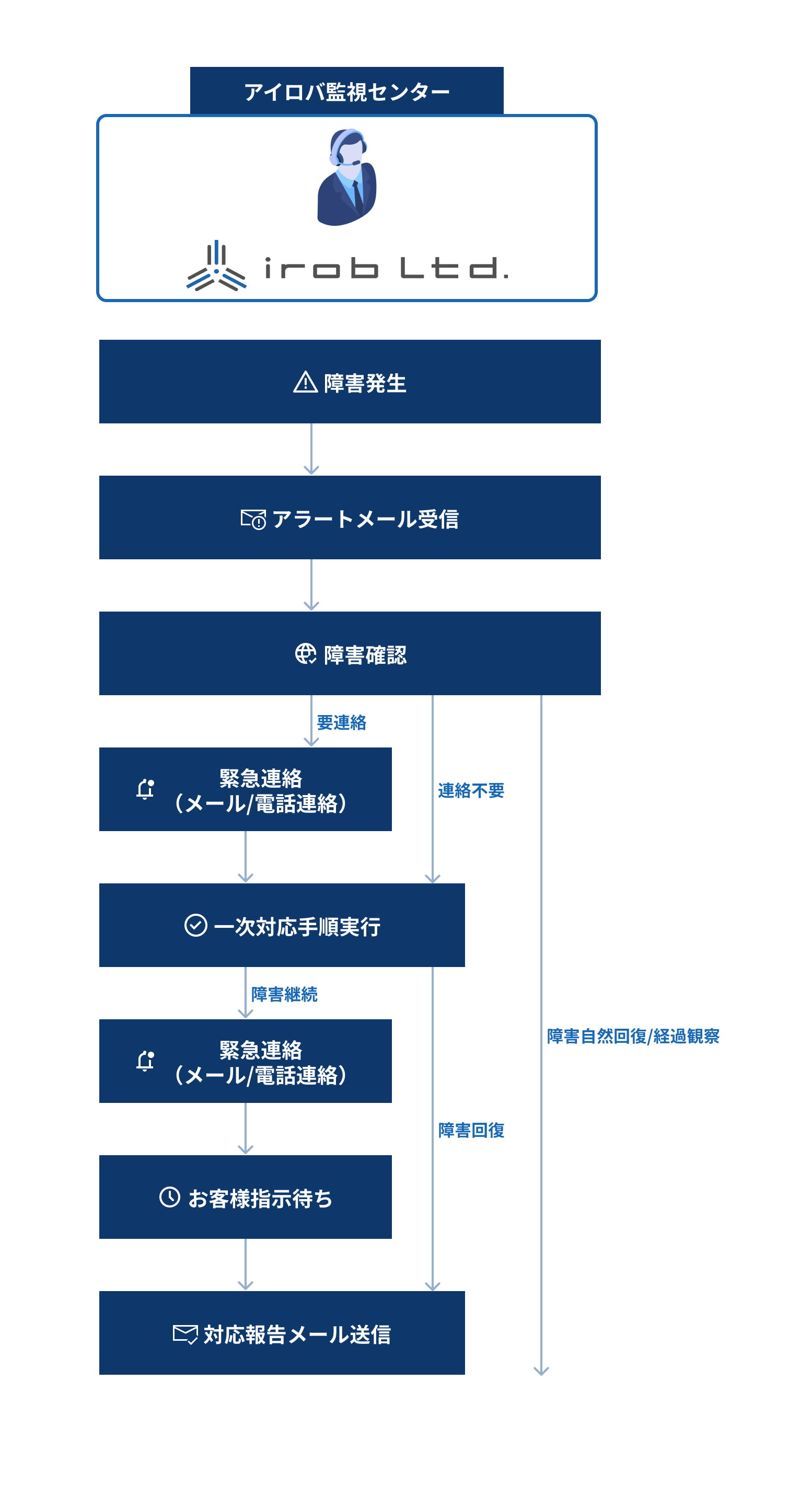 ※ 月5件程度を目安としています。 - 監視システムからのアラートが復旧していない場合、当社側でも確認の上、必要に応じご連絡差し上げます。